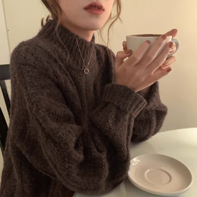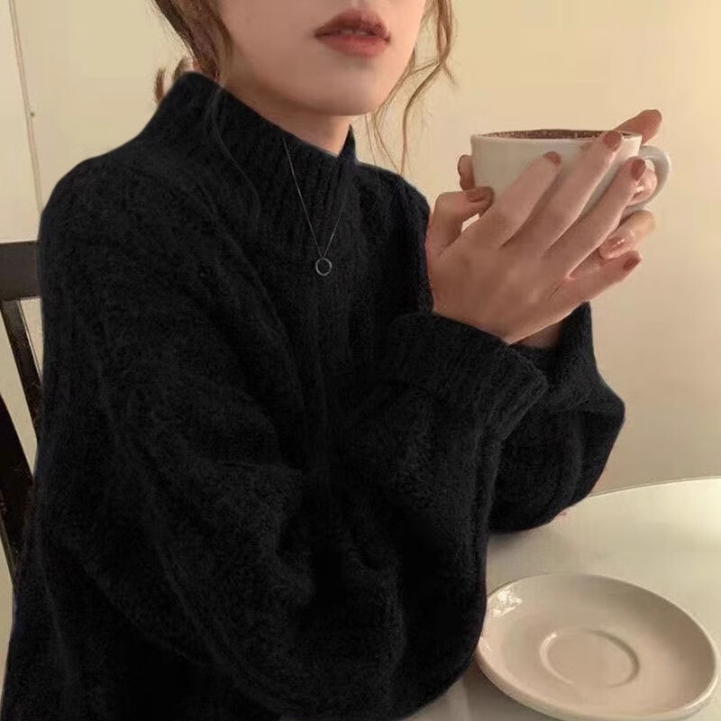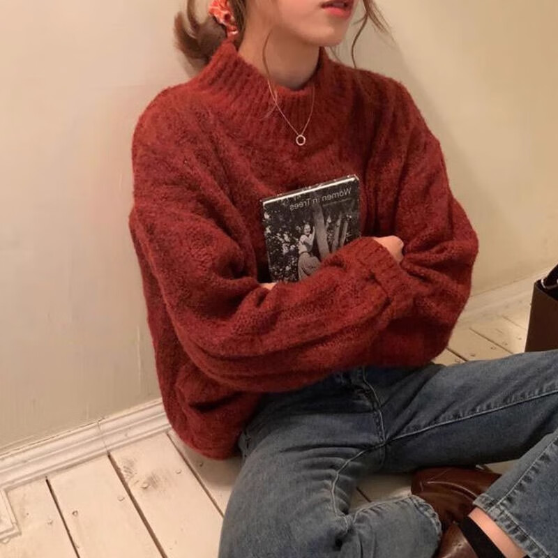 EDJCVTT慵懒风半高领复古麻花毛衣女春秋冬新款叠穿加厚保暖针织打底衫 红色 M 建议95-110斤