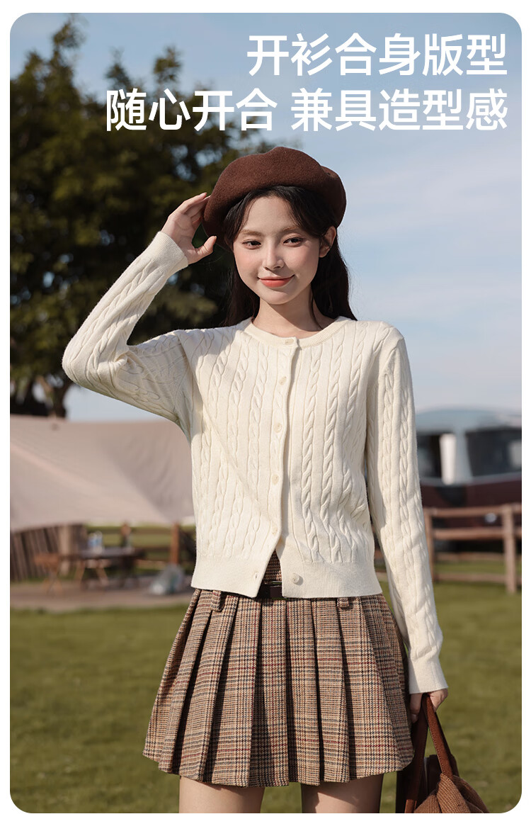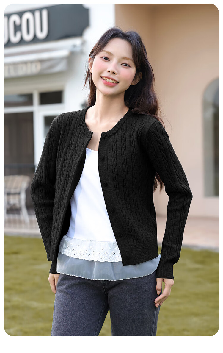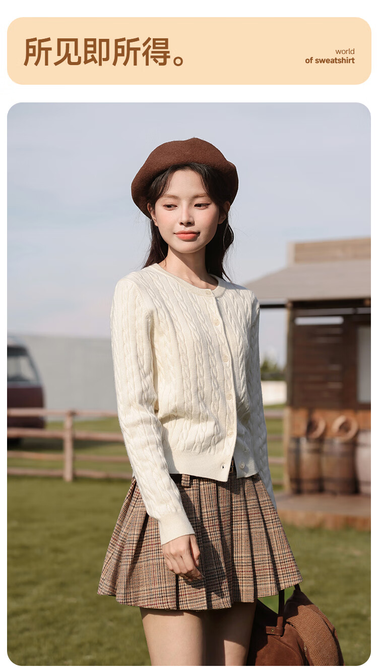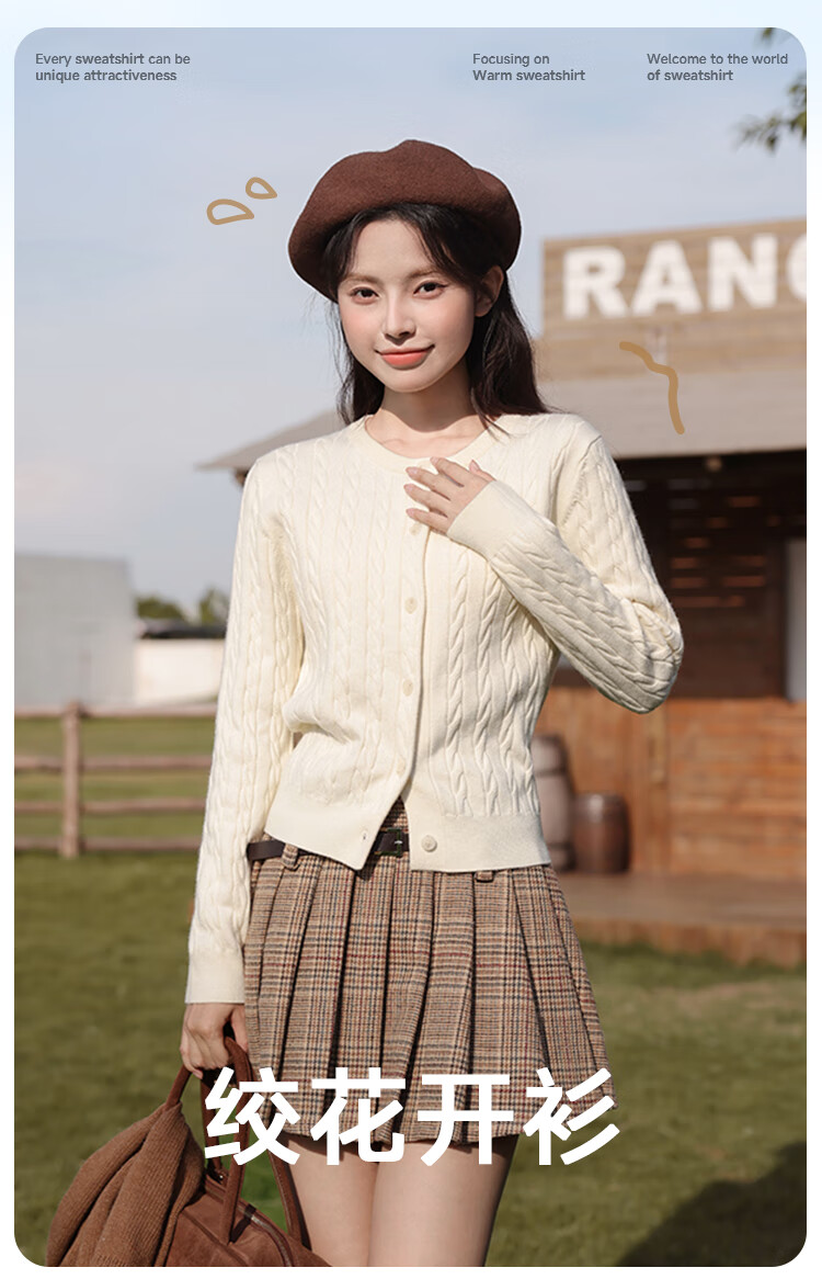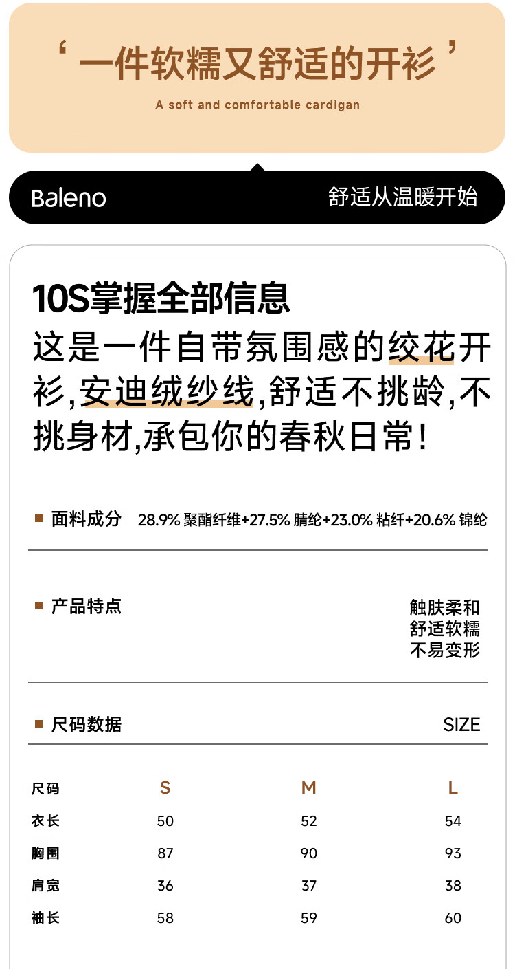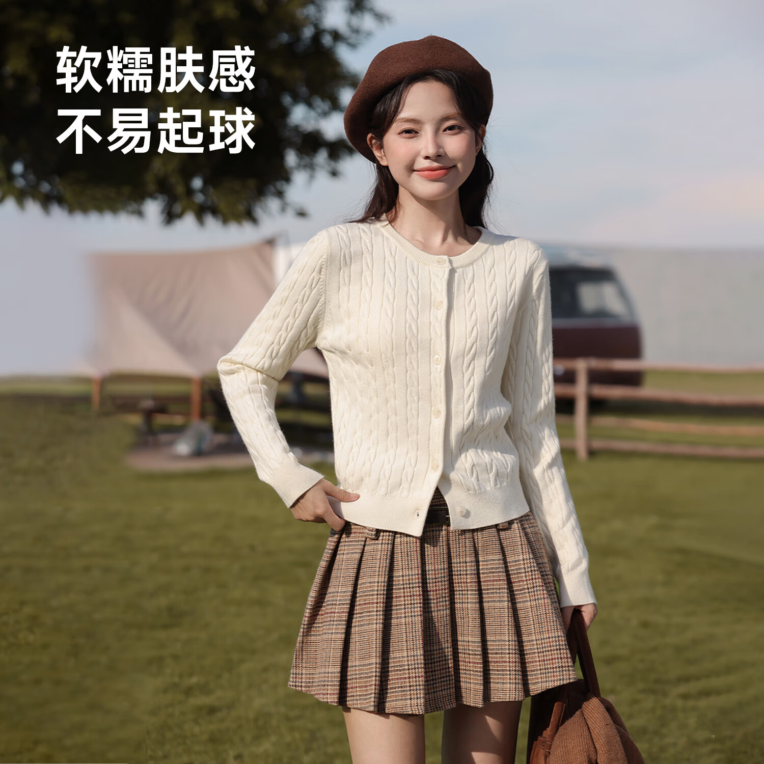 班尼路(Baleno)圆领针织开衫外套女2025年秋季新款亲肤休闲简约舒适宽松百搭上衣
