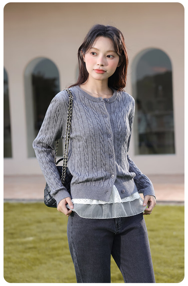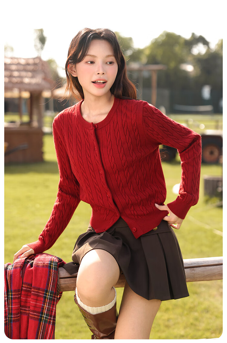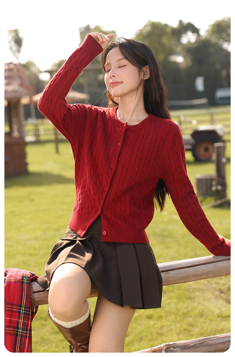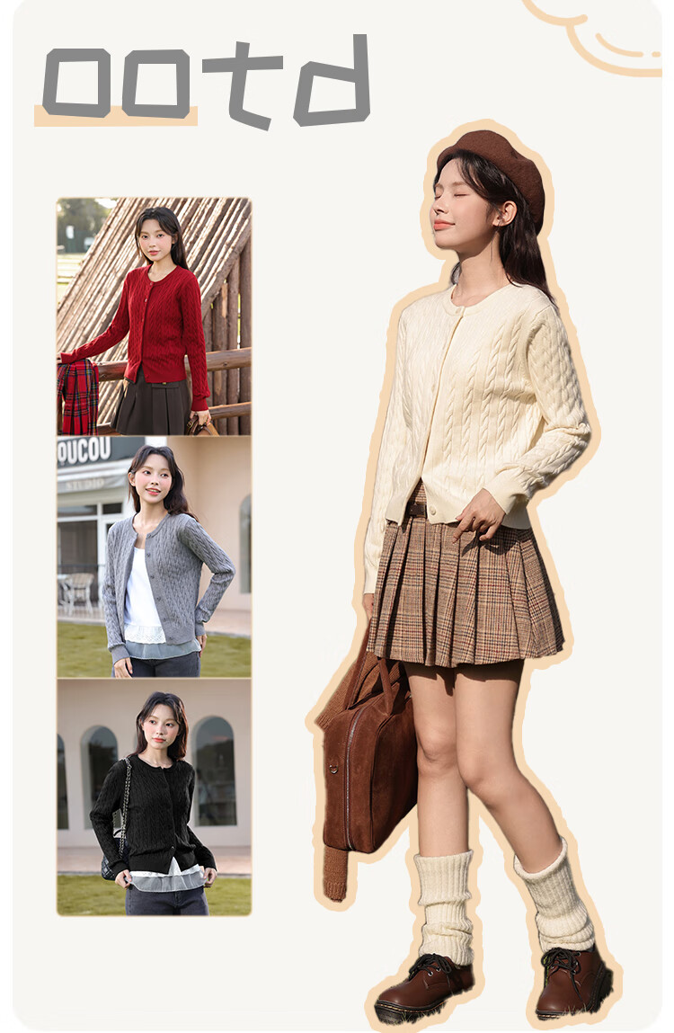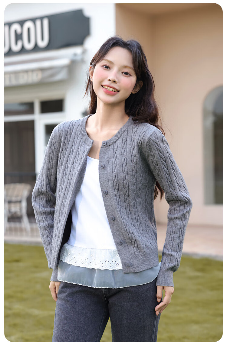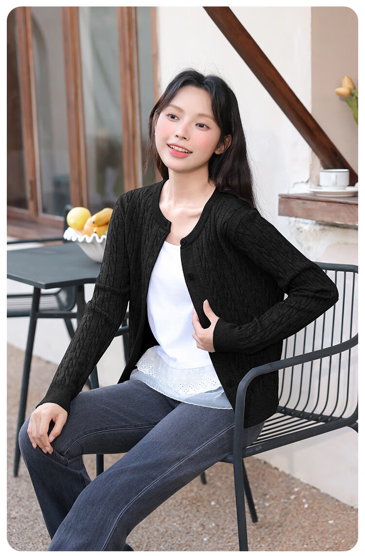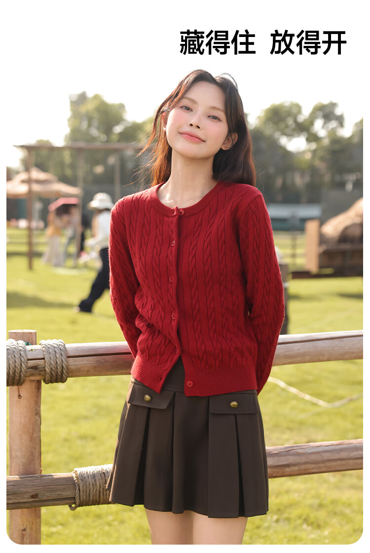 班尼路(Baleno)圆领针织开衫外套女2025年秋季新款亲肤休闲简约舒适宽松百搭上衣