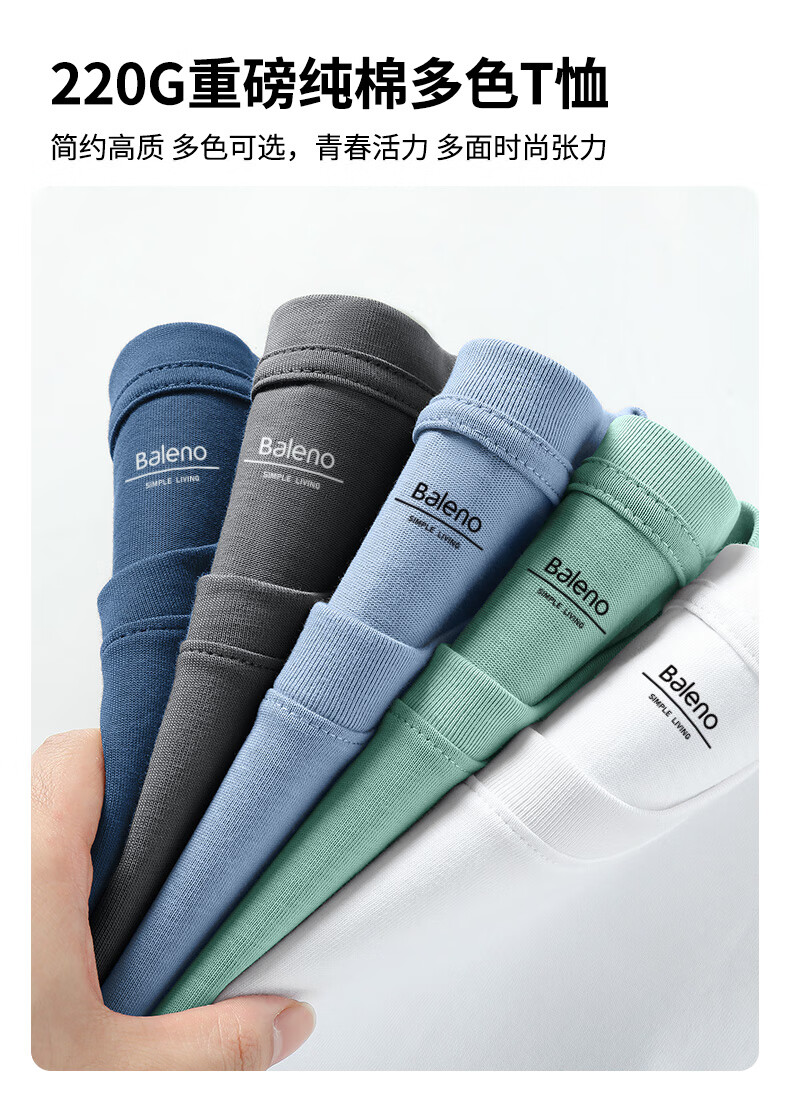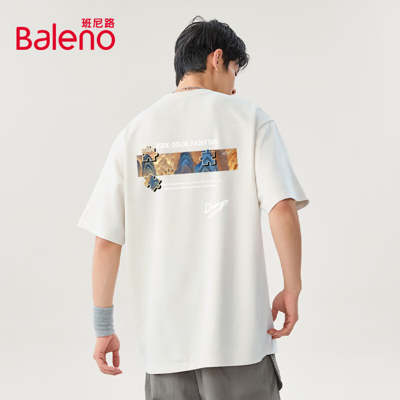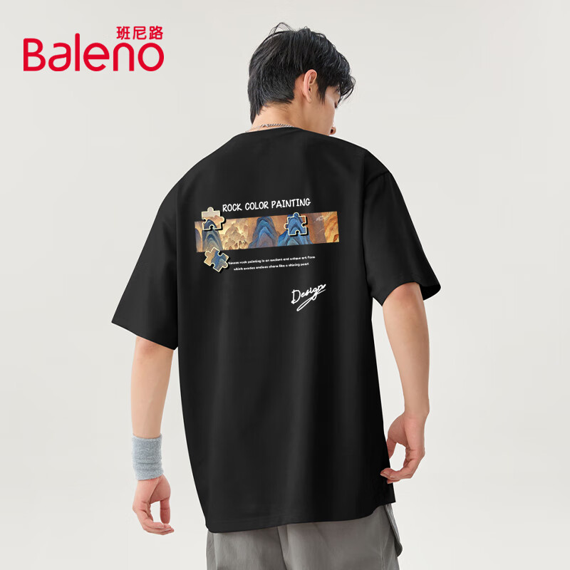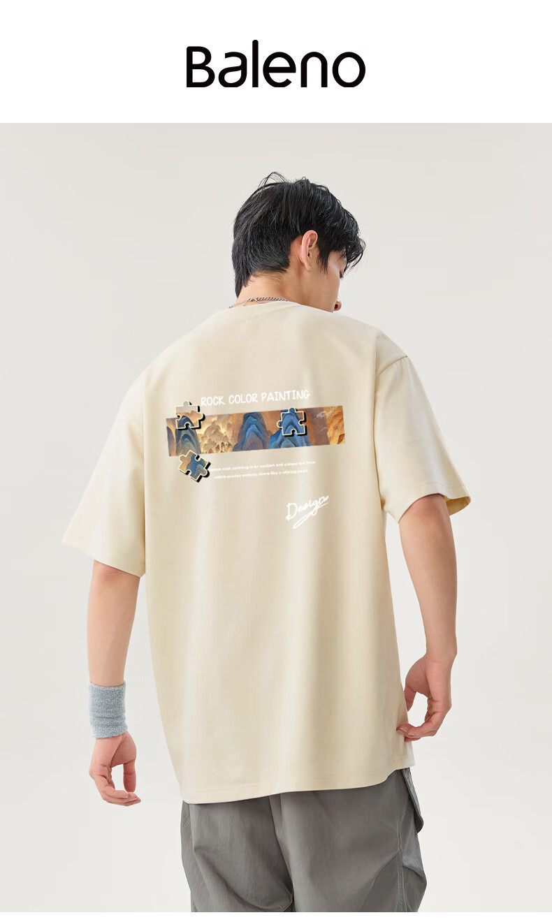 班尼路(Baleno)2025新款国潮短袖男夏季重磅纯棉t恤男士五分袖宽松透气上衣男款