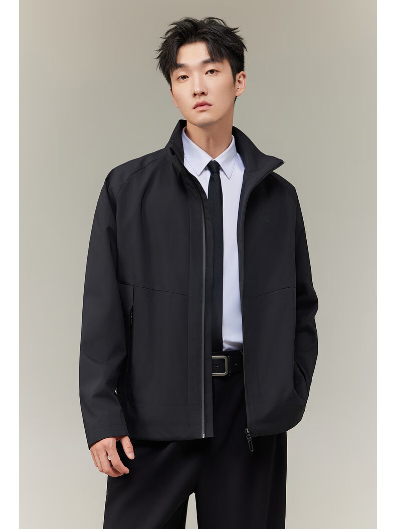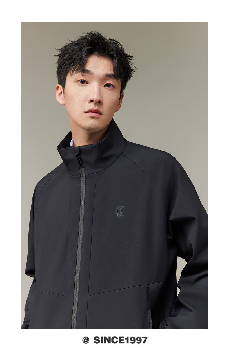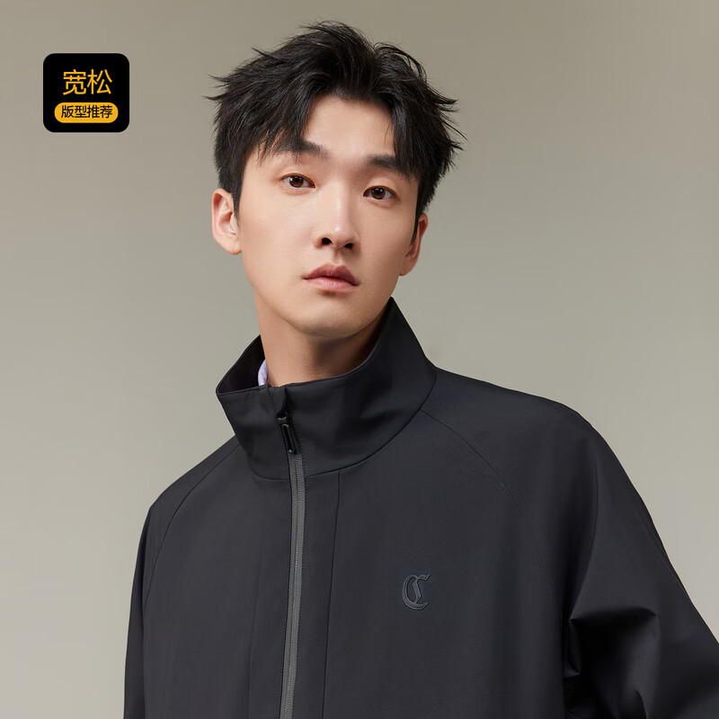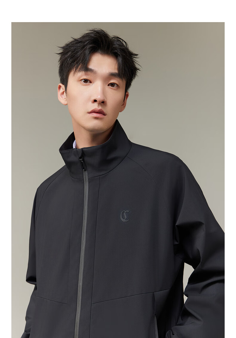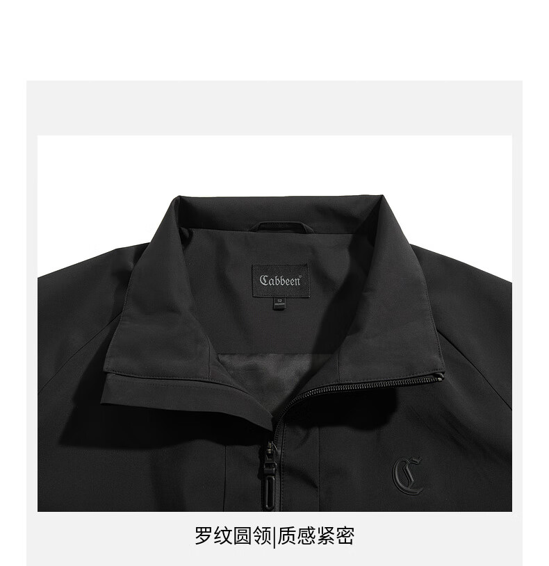卡宾(CABBEEN)【涤纶绒面平纹】休闲装男局部压胶商务户外翻领防水拉链冬季外套 煤黑色01 2XL /185/54