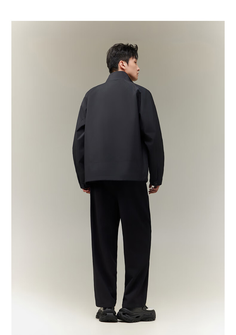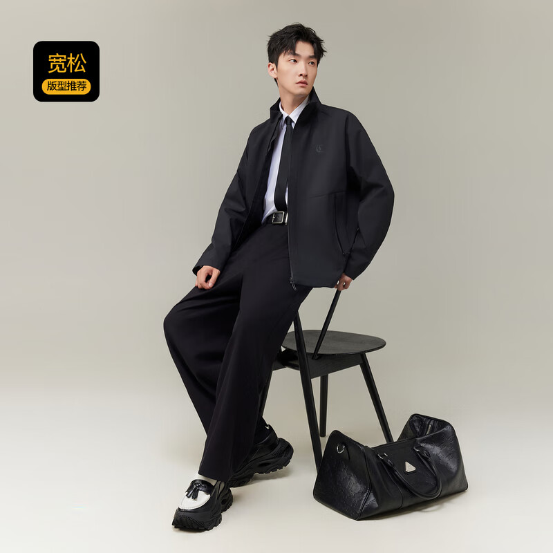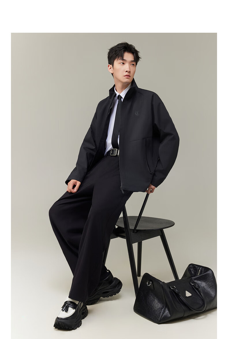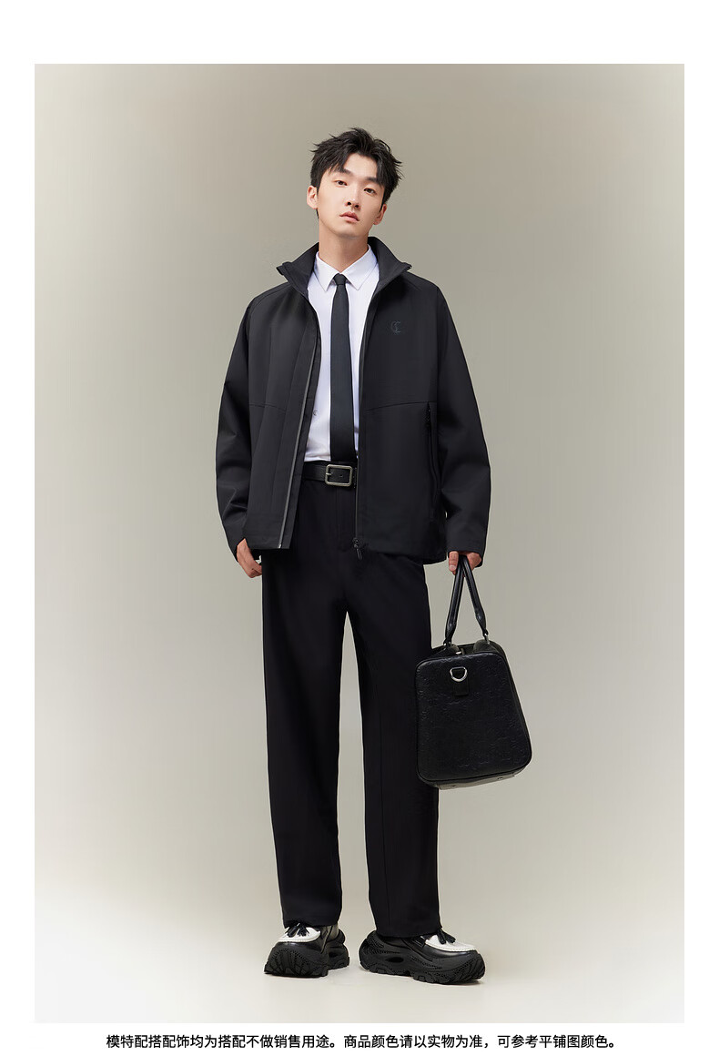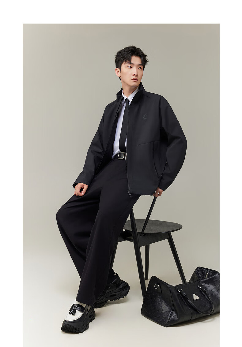 卡宾(CABBEEN)【涤纶绒面平纹】休闲装男局部压胶商务户外翻领防水拉链冬季外套 煤黑色01 2XL /185/54