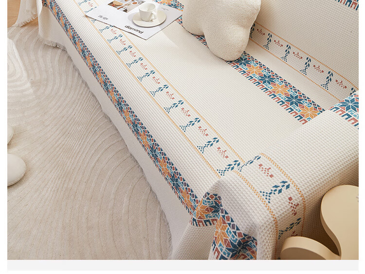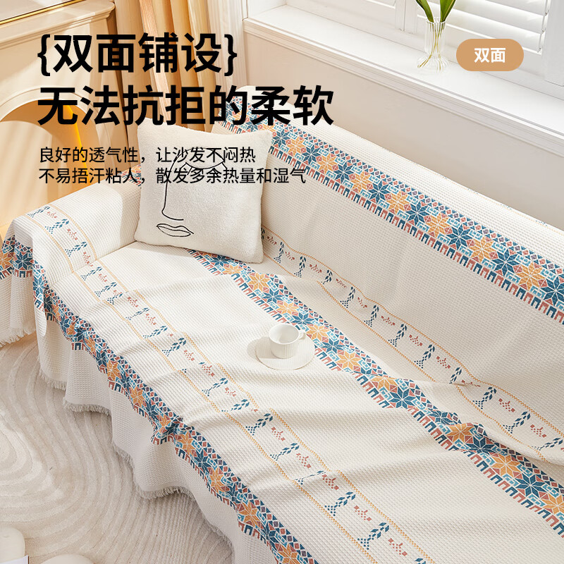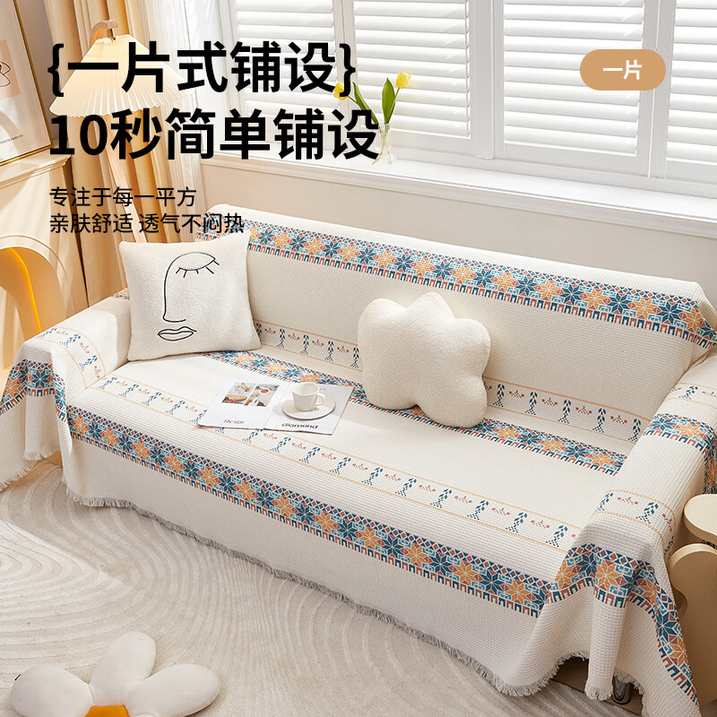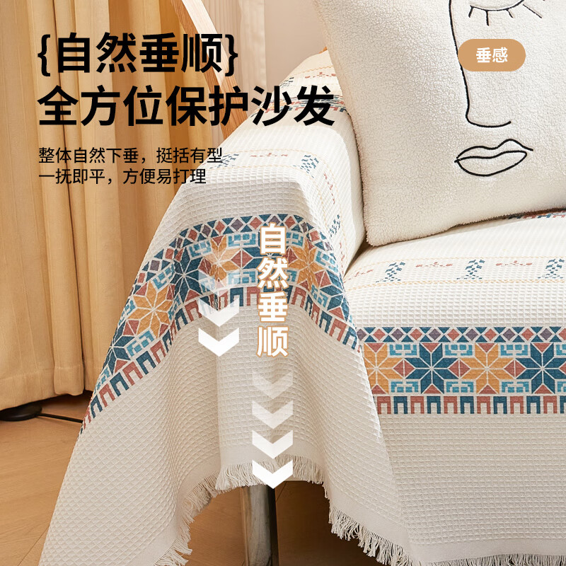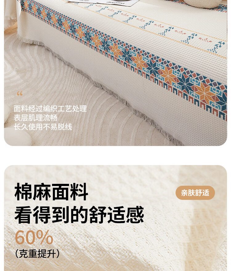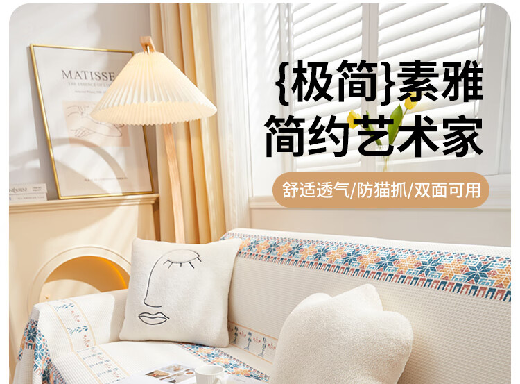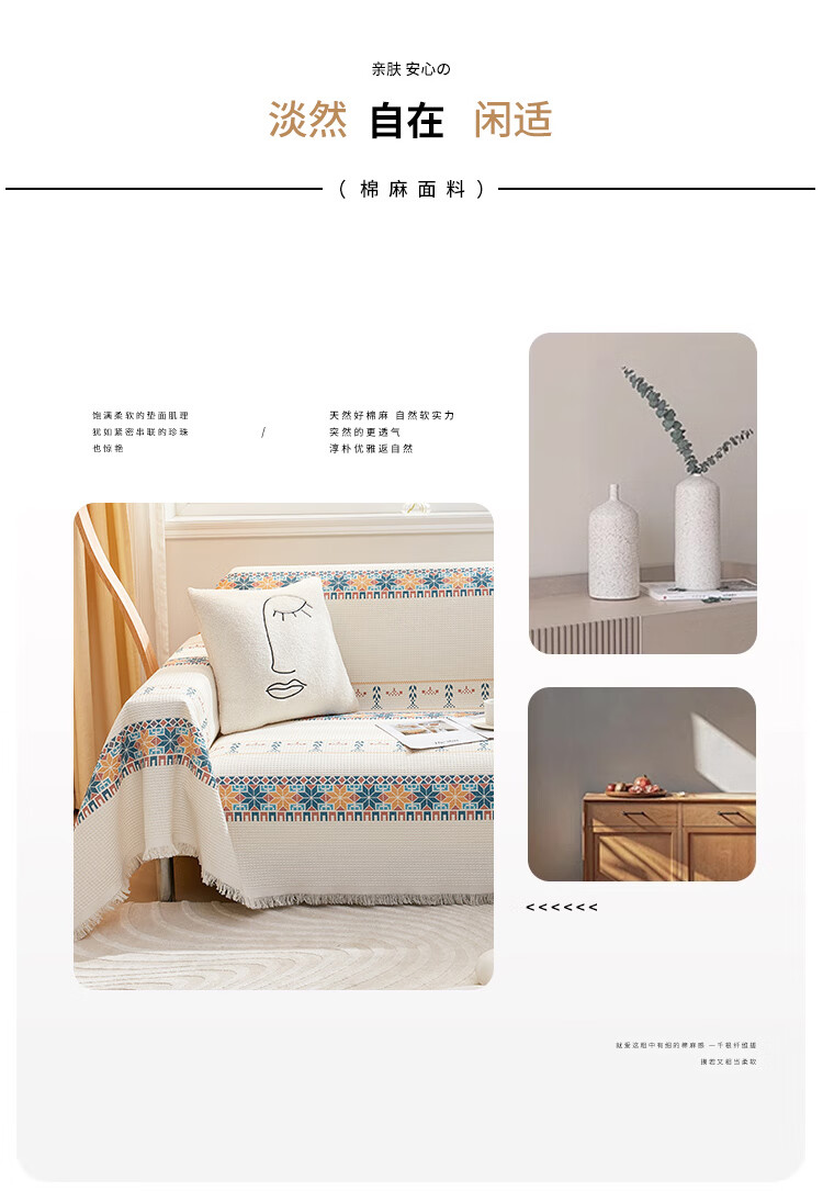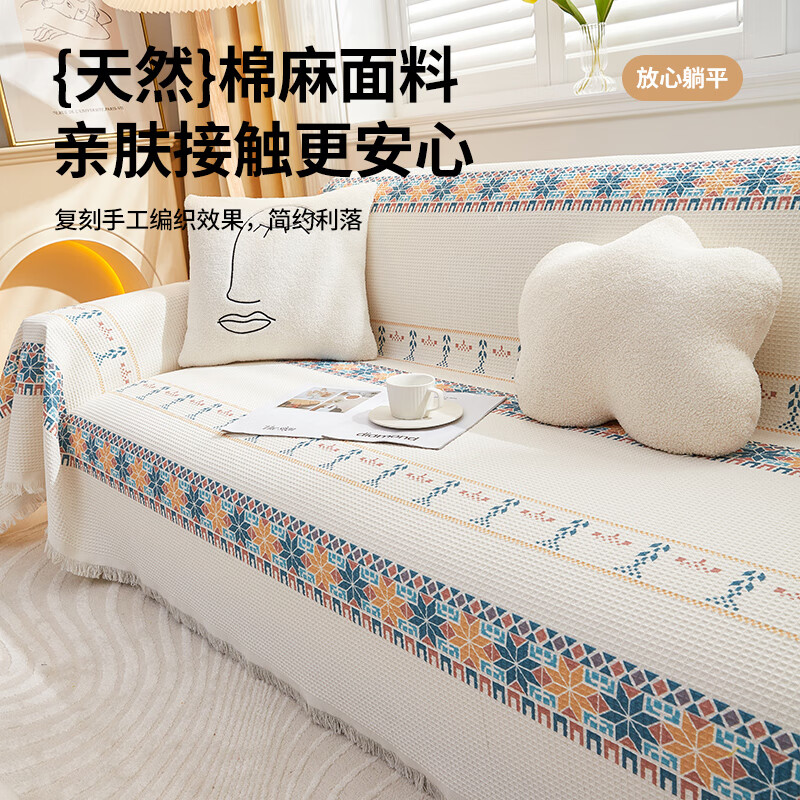 妙紫棉麻沙发盖布巾四季通用简约防滑沙发套罩防猫抓皮沙发垫子全盖毯 梦幻/升级加厚防水防猫抓 180cm*340cm 适合三人位