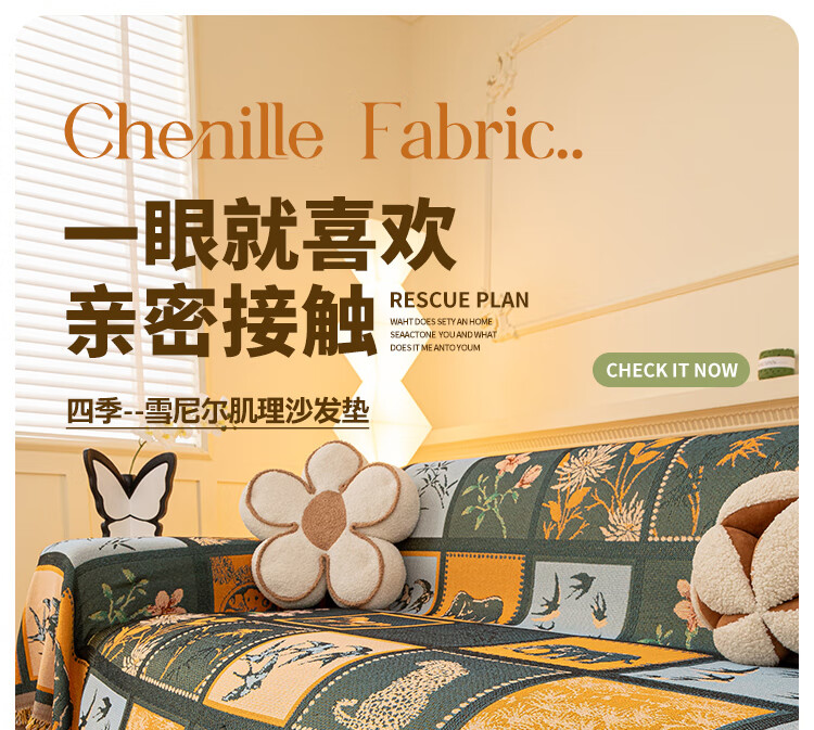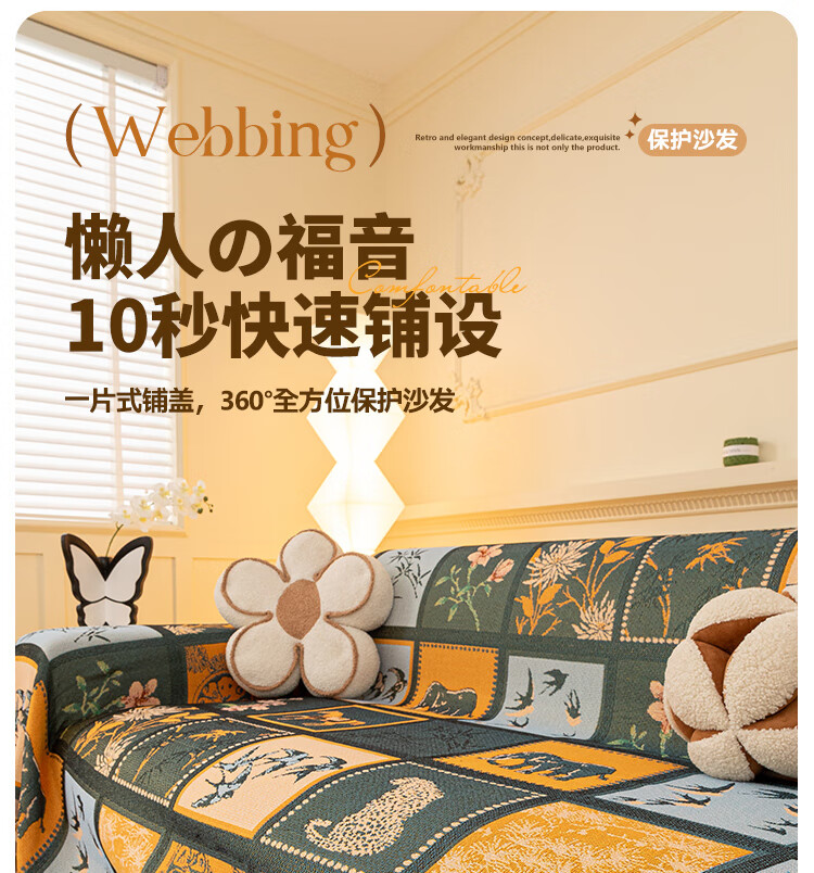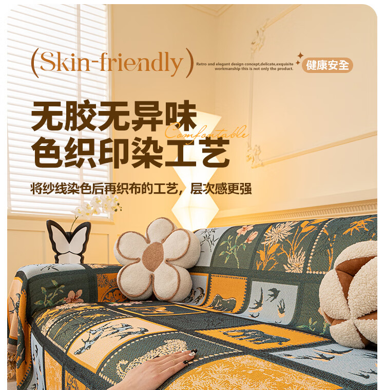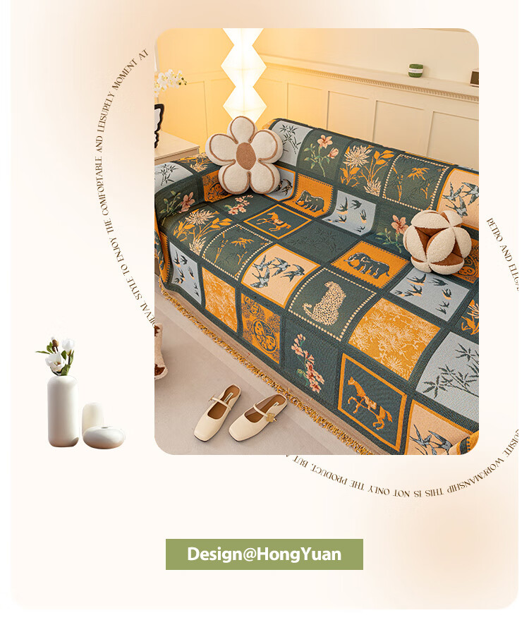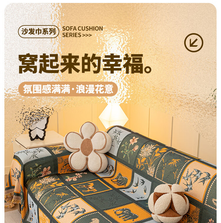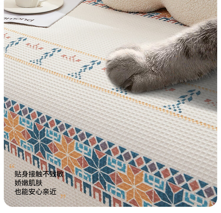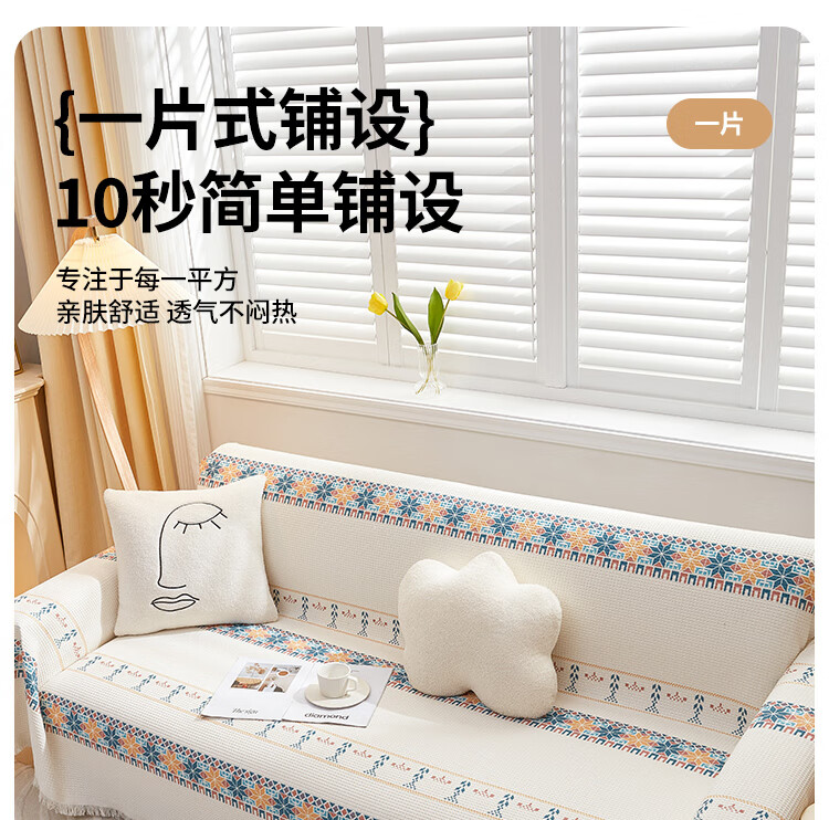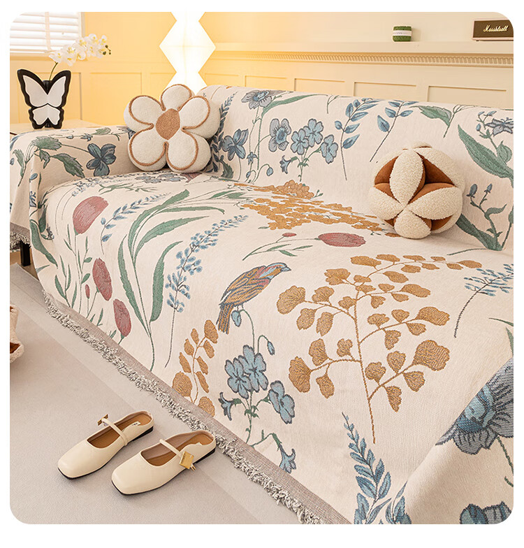 妙紫棉麻沙发盖布巾四季通用简约防滑沙发套罩防猫抓皮沙发垫子全盖毯 梦幻/升级加厚防水防猫抓 180cm*340cm 适合三人位