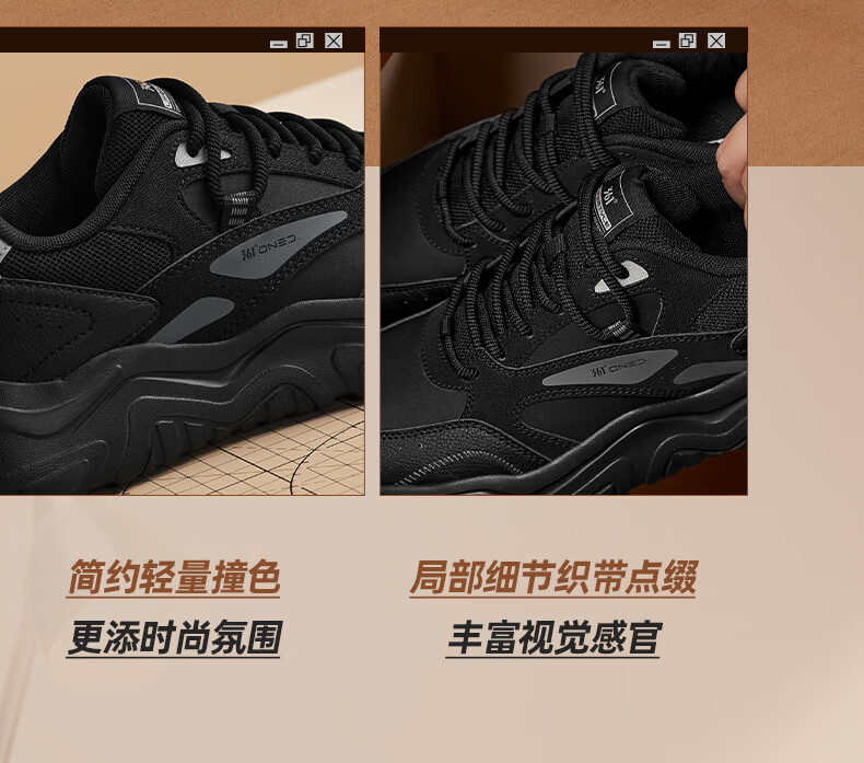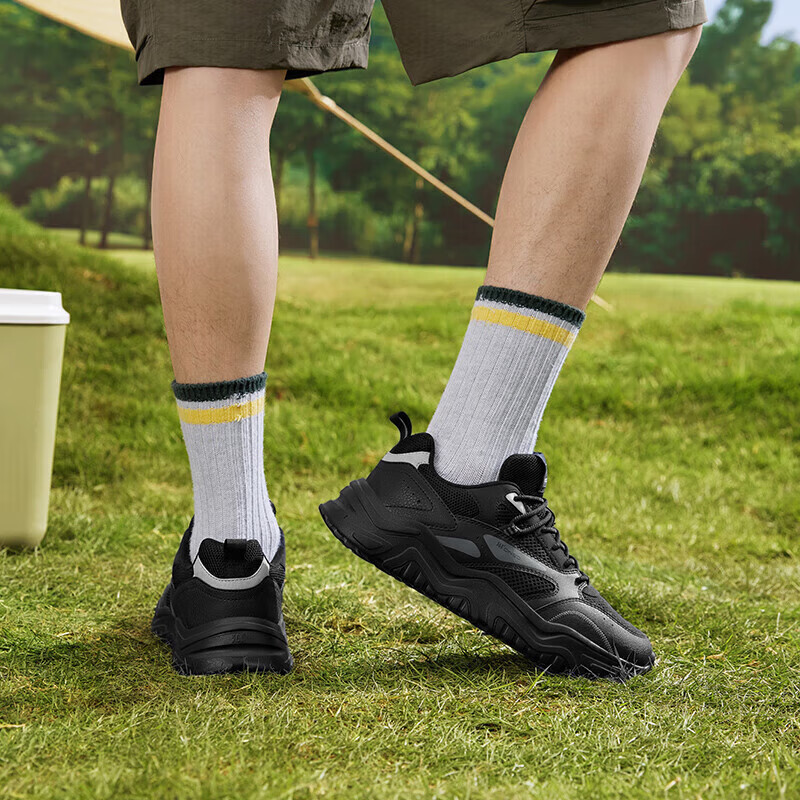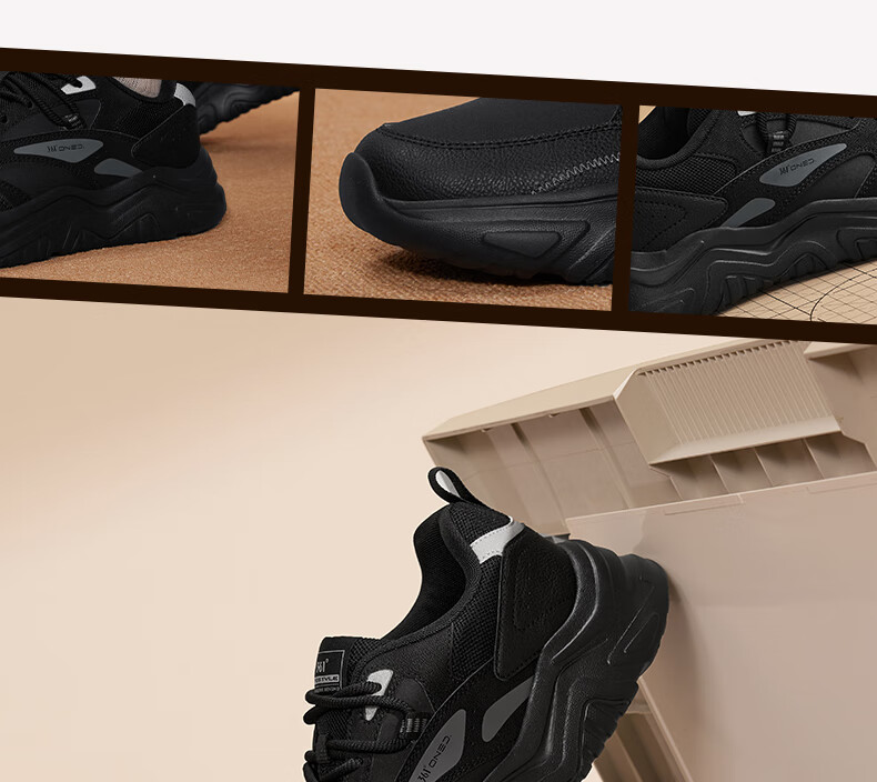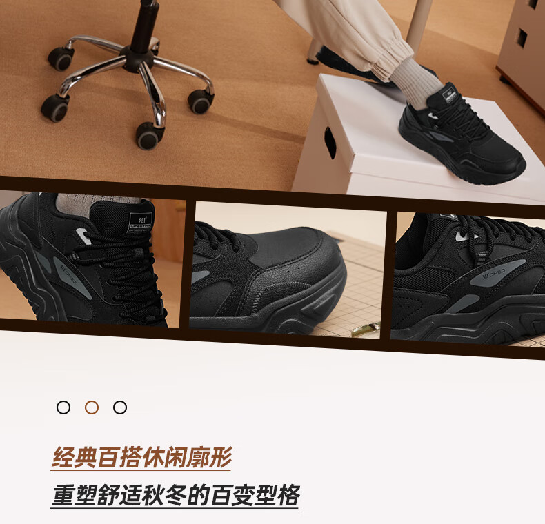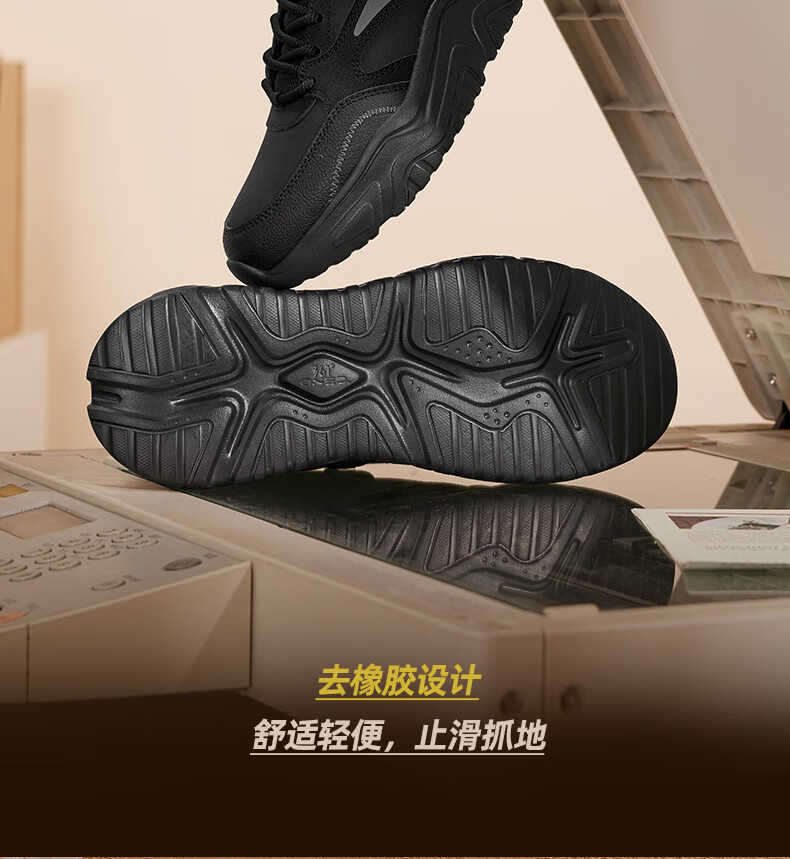 361°运动鞋男秋季厚底增高黑色通勤鞋休闲跑步老爹鞋子男672426763F-4