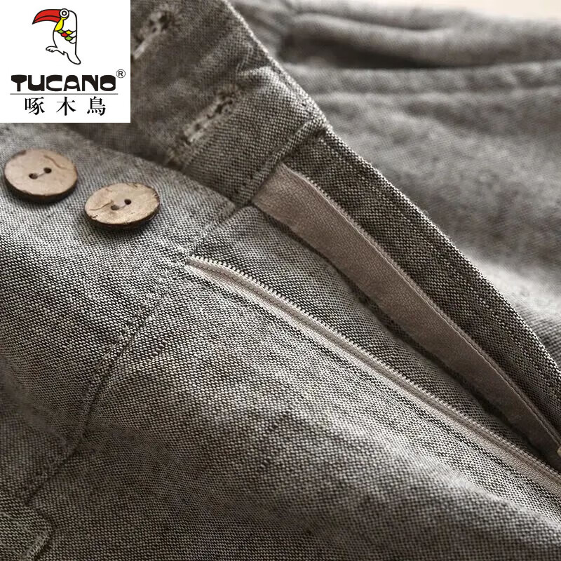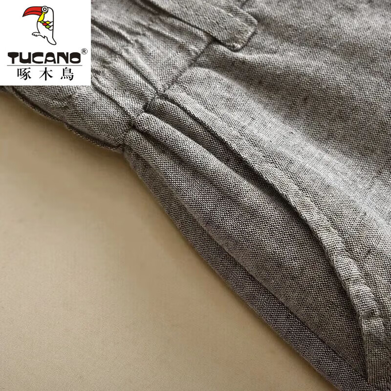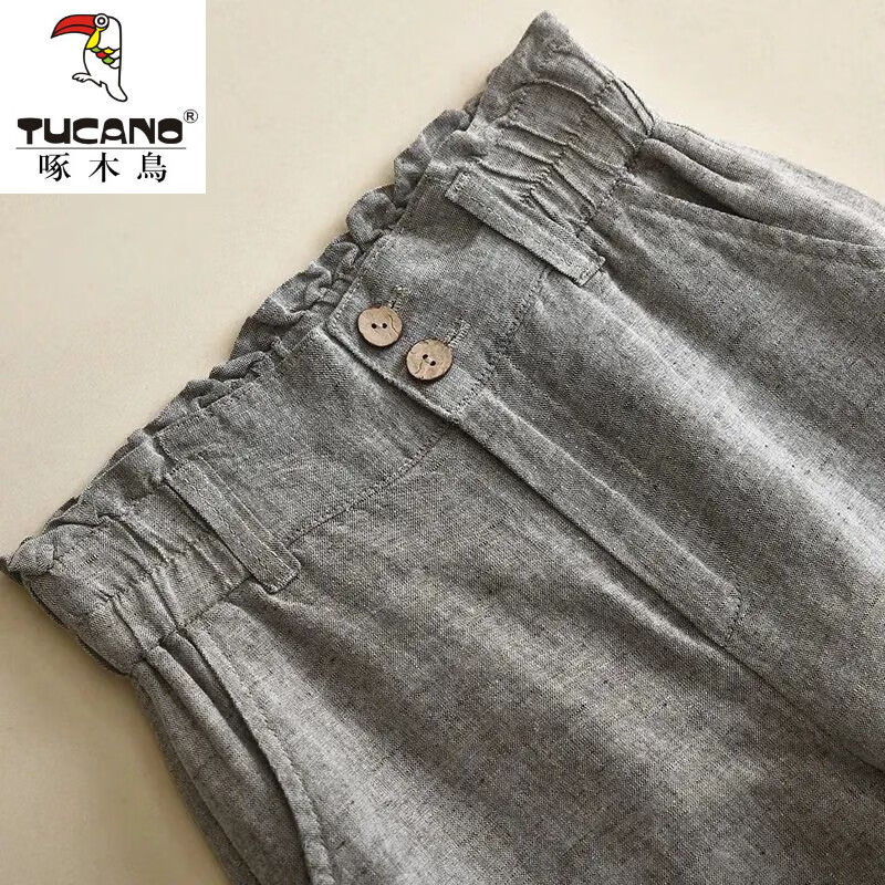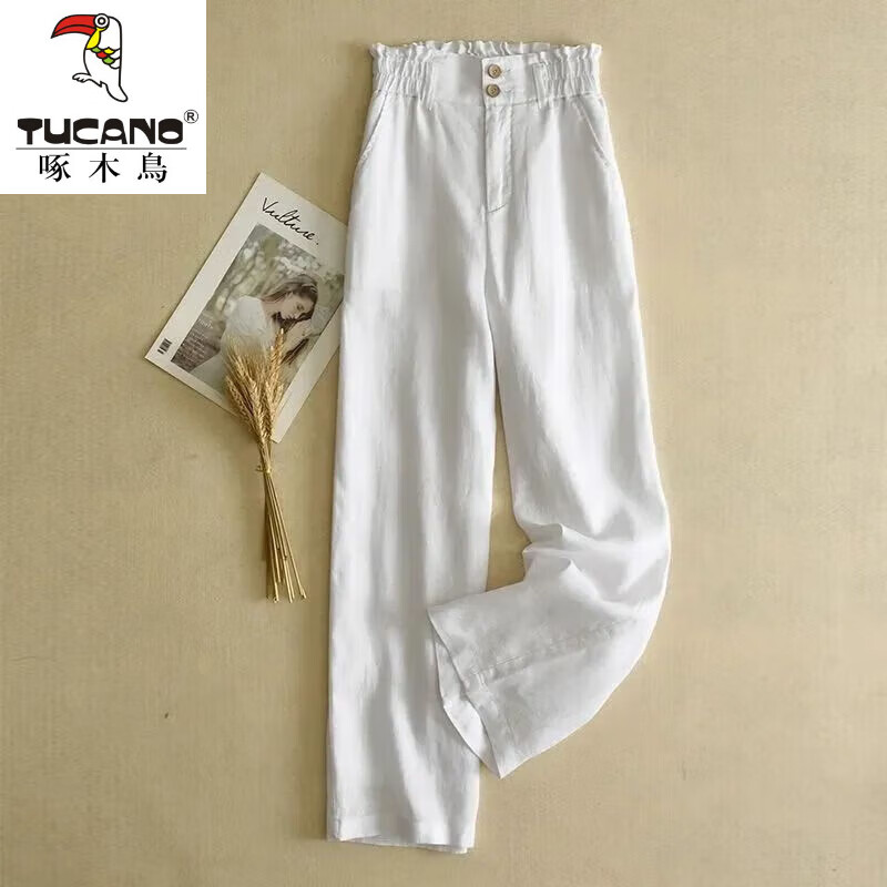 啄木鸟亚麻阔腿裤女高腰垂感折扣商场处理夏季棉麻女裤花苞腰直筒裤 938原麻色长/裤 M 建议95-105斤
