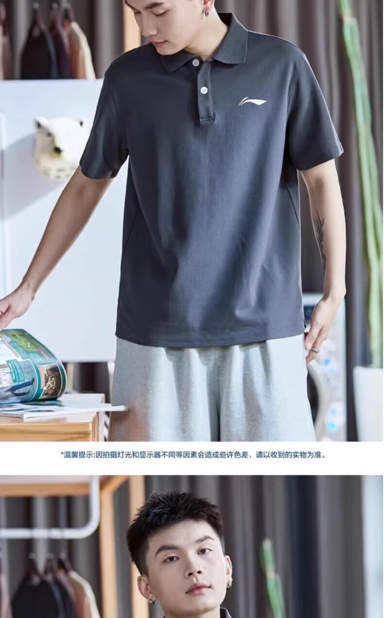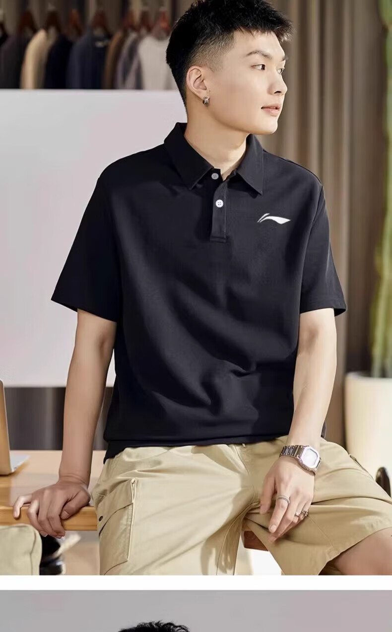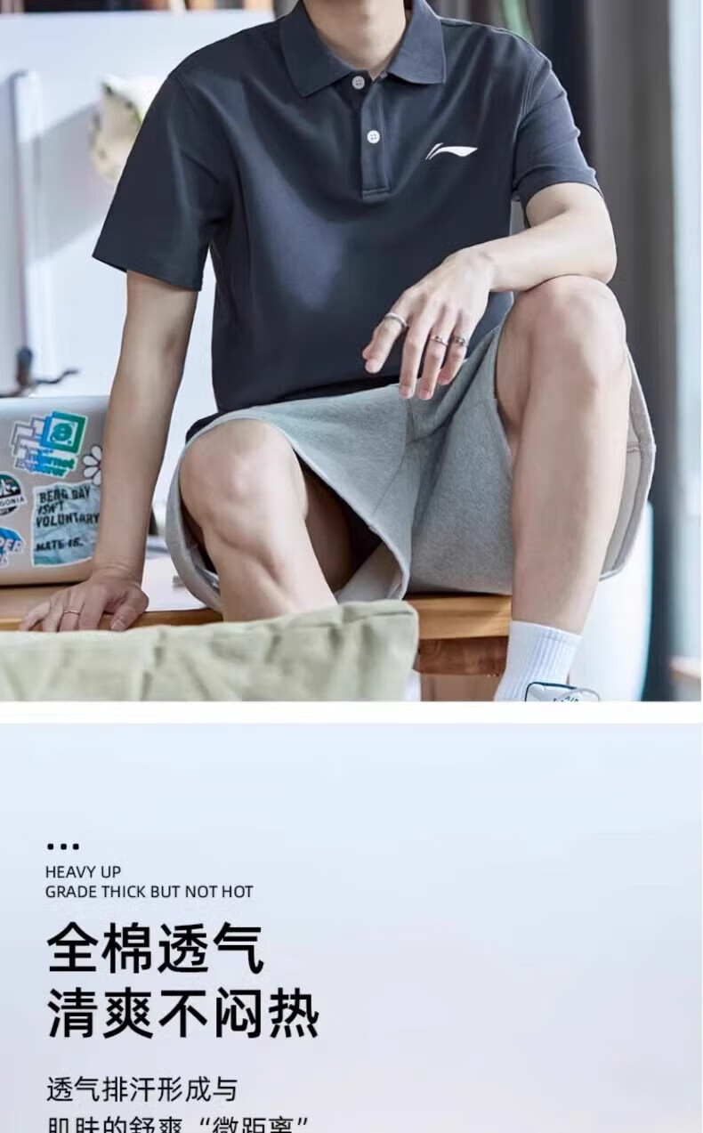 李宁棉polo衫男透气衬衫夏季跑步t恤运动休闲短袖翻领半袖上衣