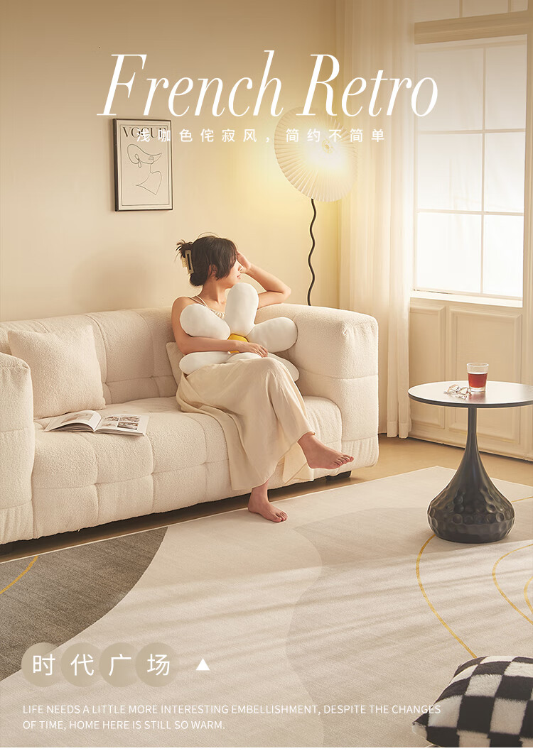 Y U-LIVE地毯客厅2025新款奶油风轻奢高级防水卧室地垫家用沙发大面积全铺 S仿羊绒-流华 定制请联系客服